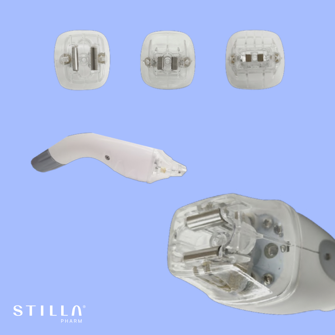 Stilla Line wyposażona jest w różne głowice zabiegowe, które umożliwiają pracę na dużych i małych obszarach ciała oraz na twarzy.