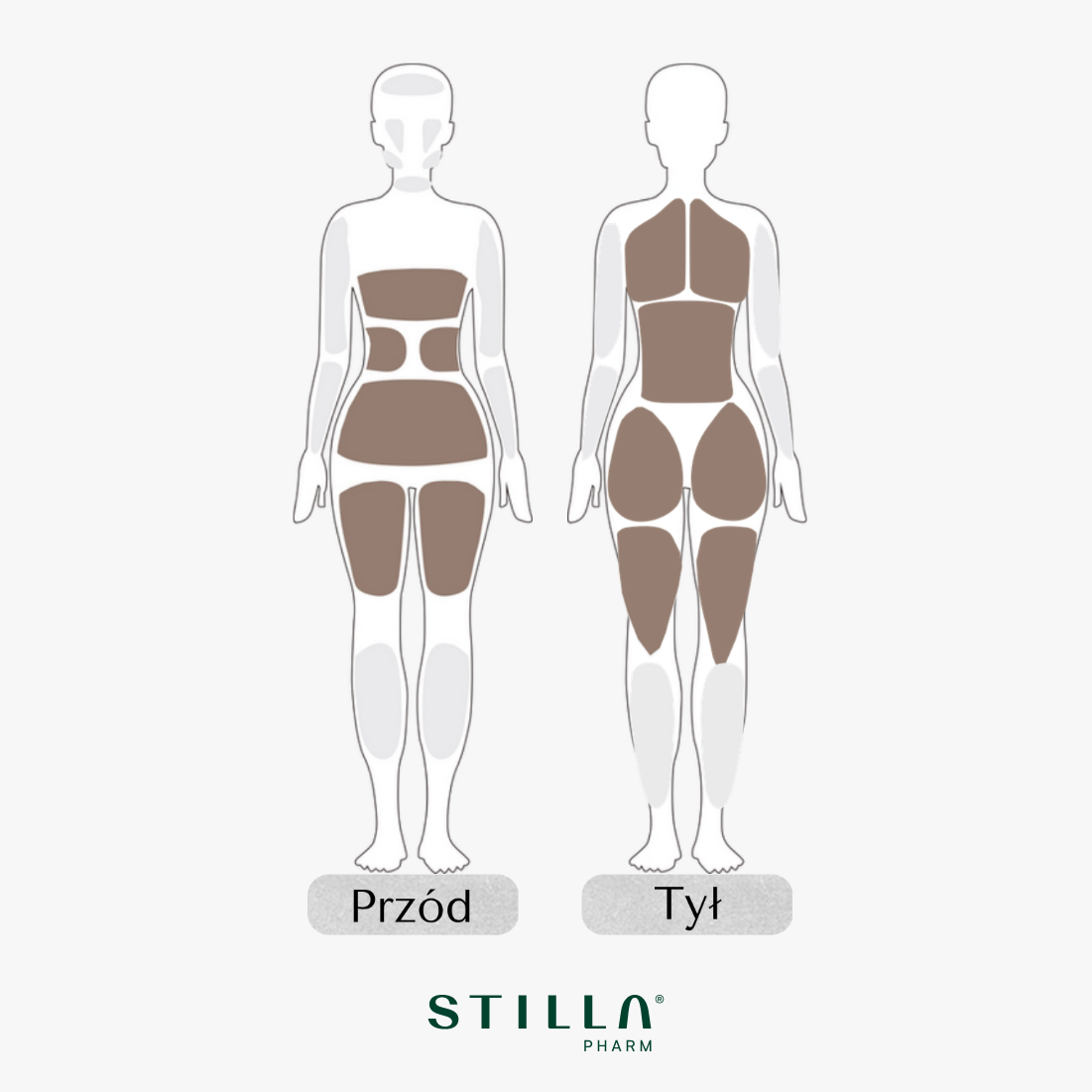 w obszarach takich jak brzuch, pośladki i uda.